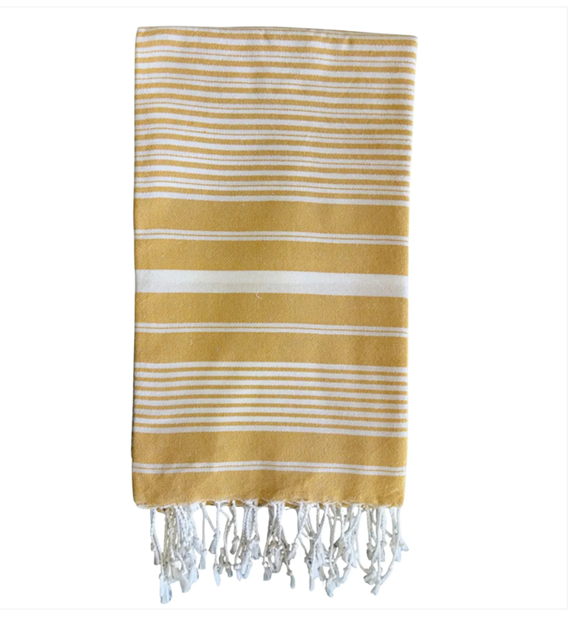 Šie satriecošie sinepju krāsas svītrainie dvieļi ir meistarīgi austi no 100% augstākās kvalitātes turku kokvilnas, kas pazīstama ar savu izcilo maigumu, uzsūkšanas spēju un ātrās žūšanas spējām.