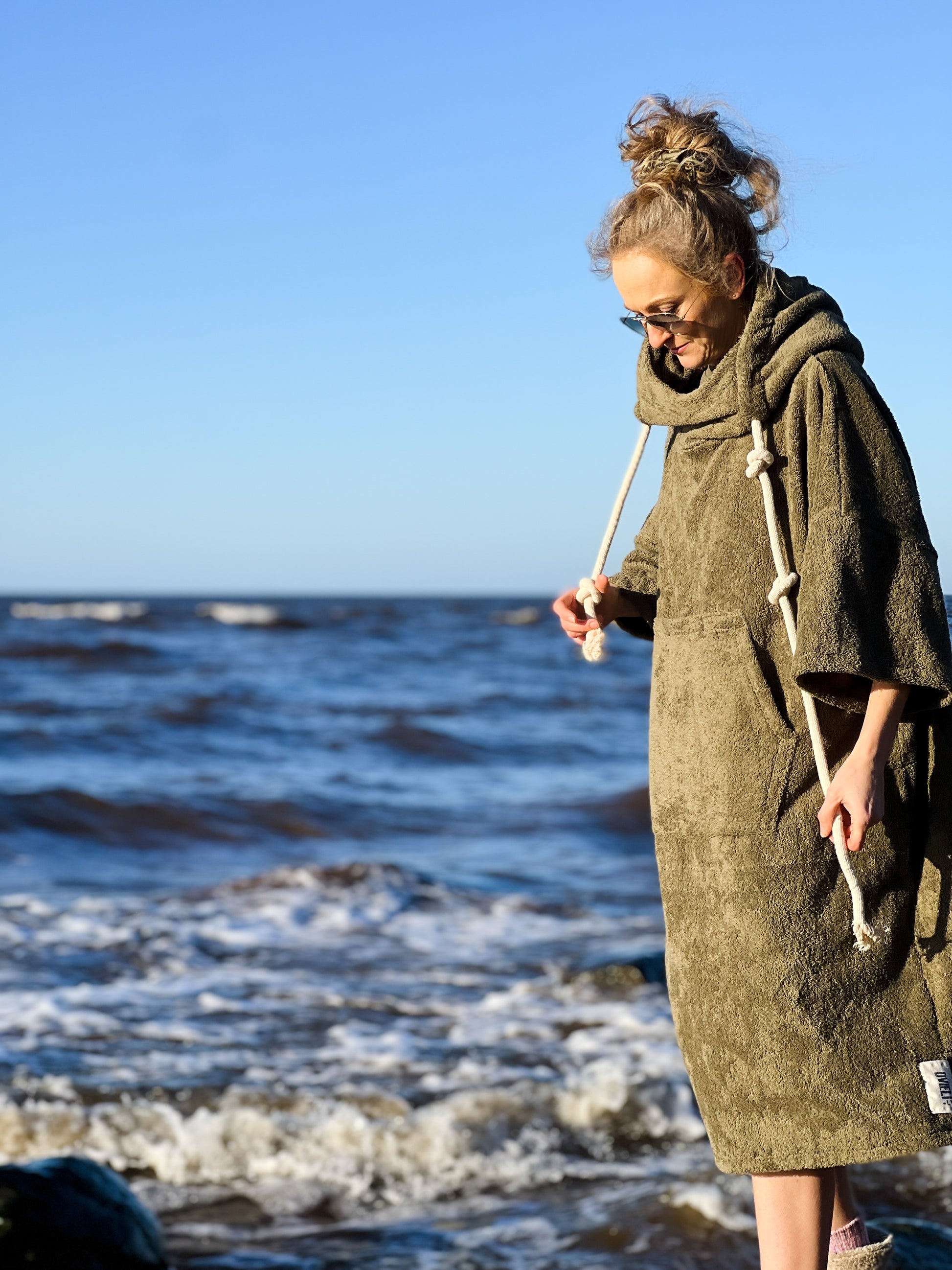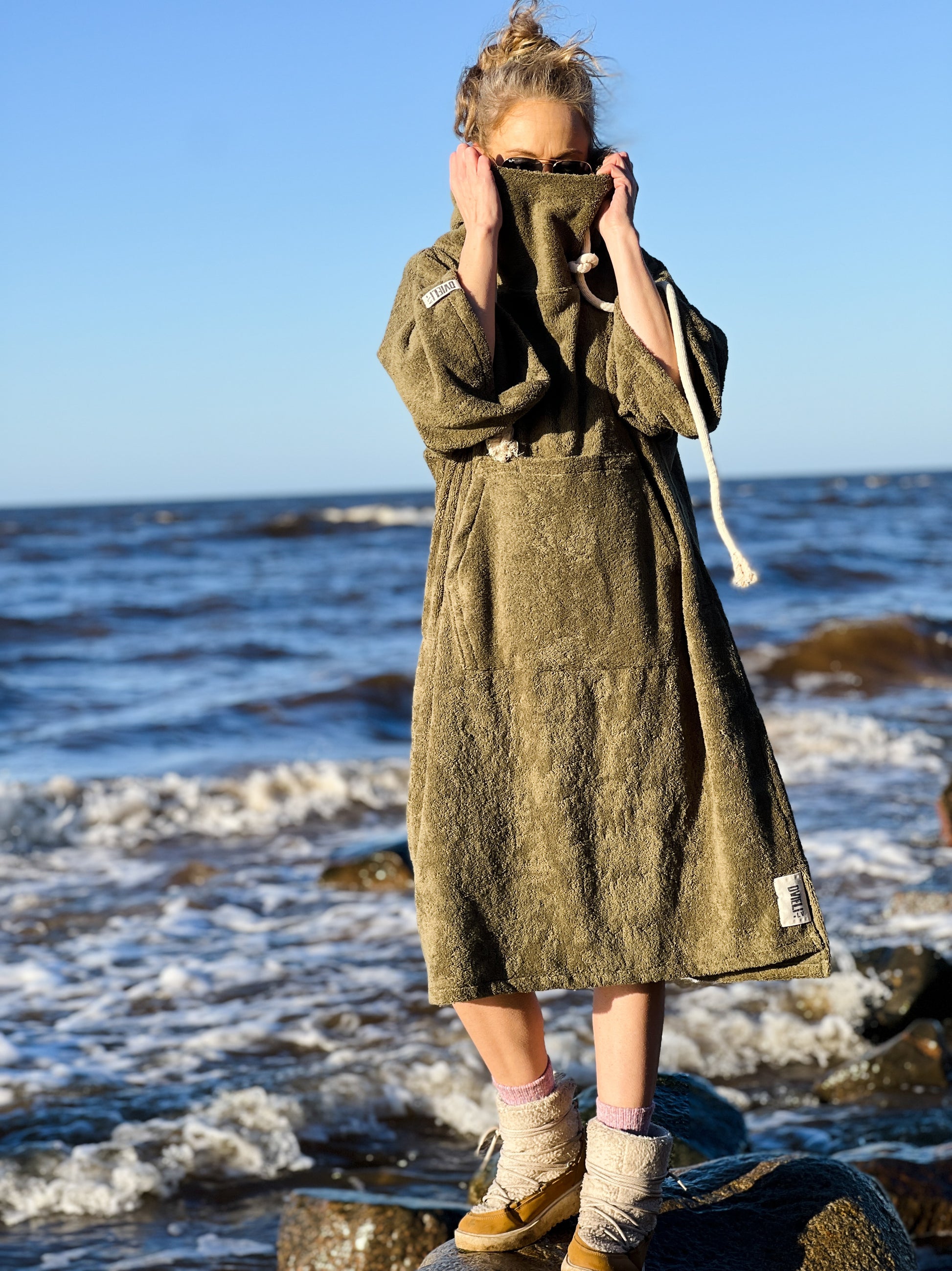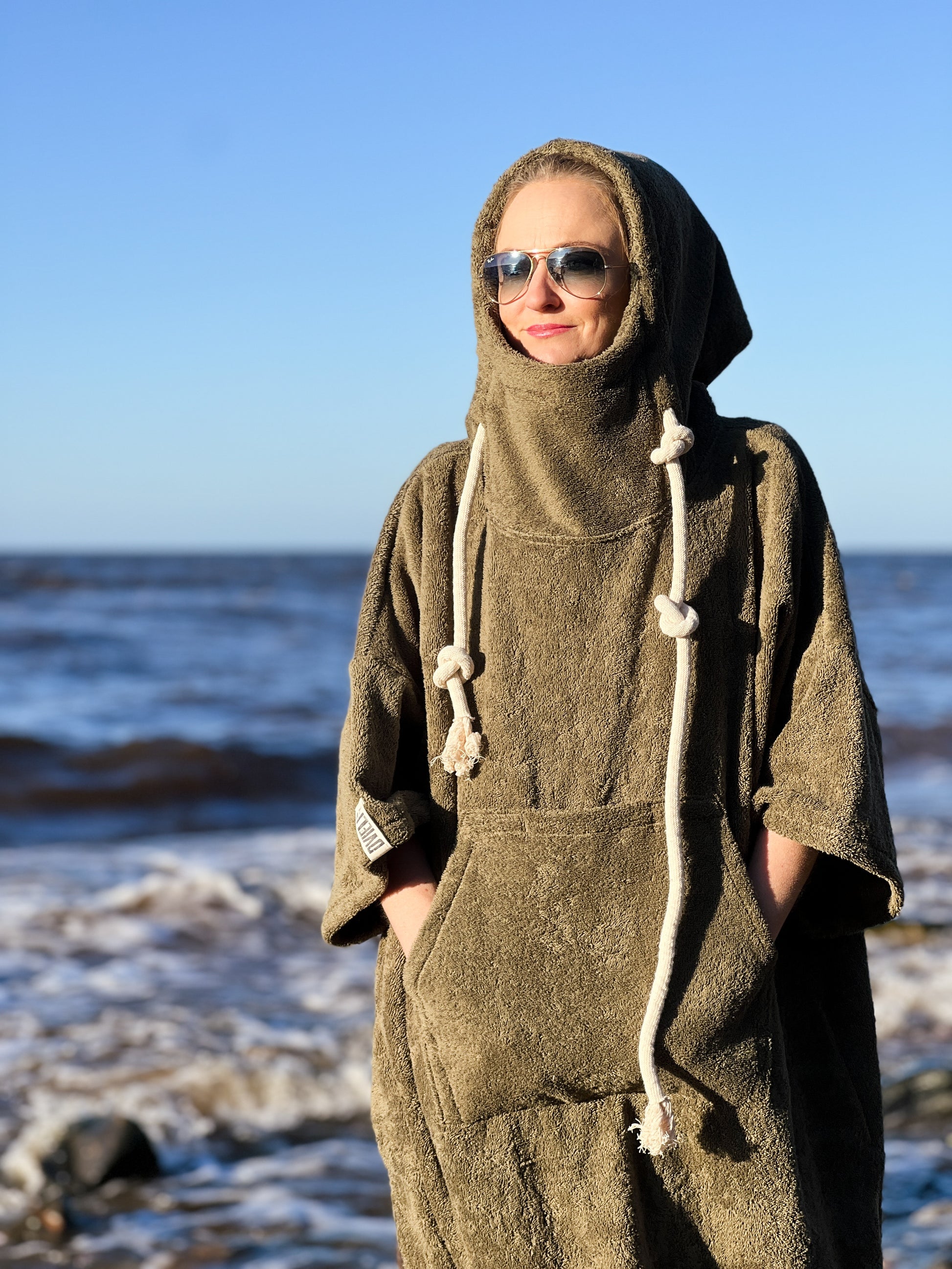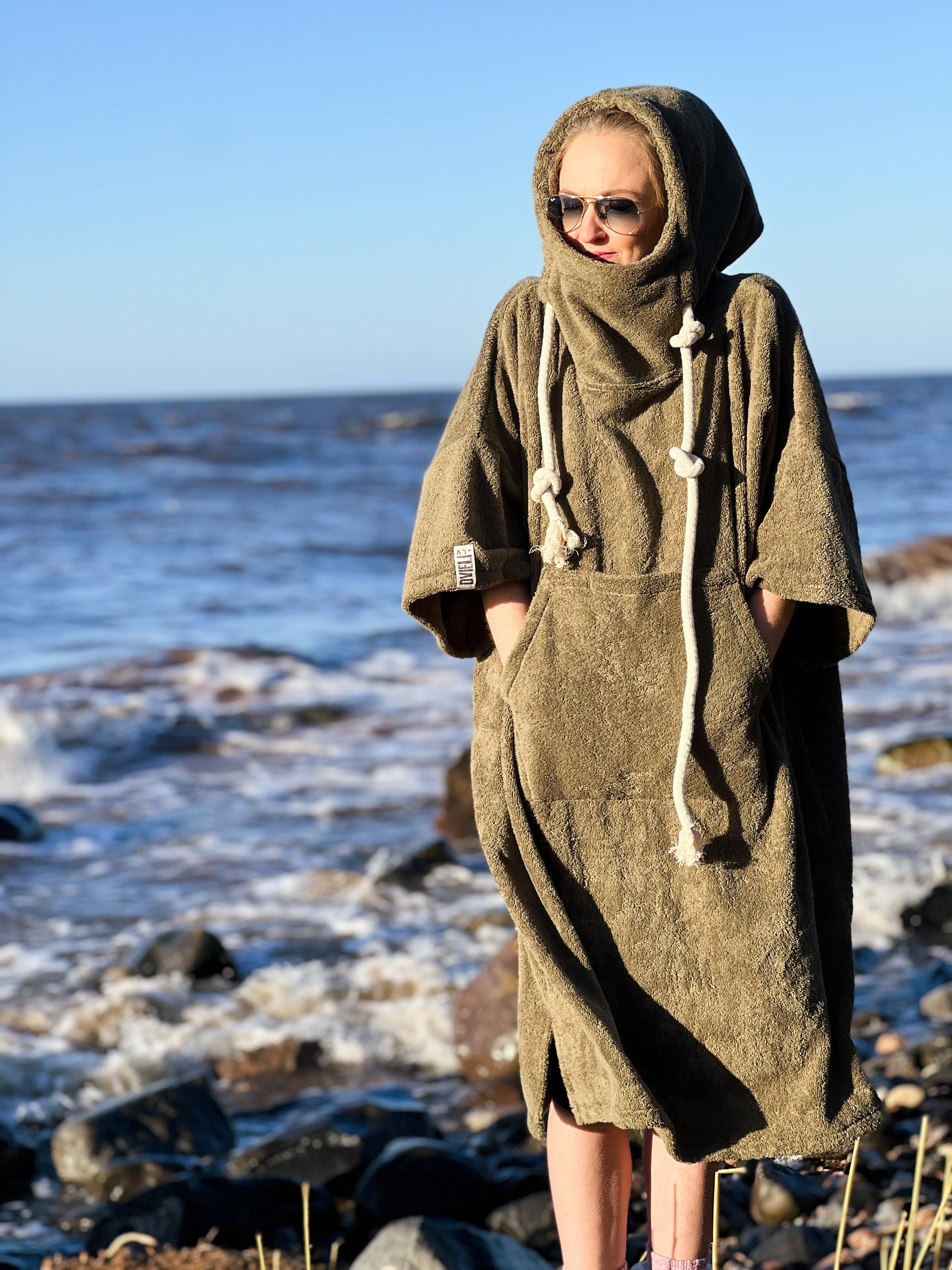 Kuidas pärast ujumist soojaks saada? Pončo! Suurepärane valik, et kiiresti tuule eest varjuda, mugavalt ja salaja! Riietuda ümber, panna pončo taskusse telefon või autos võti. Varsti uued värvid!