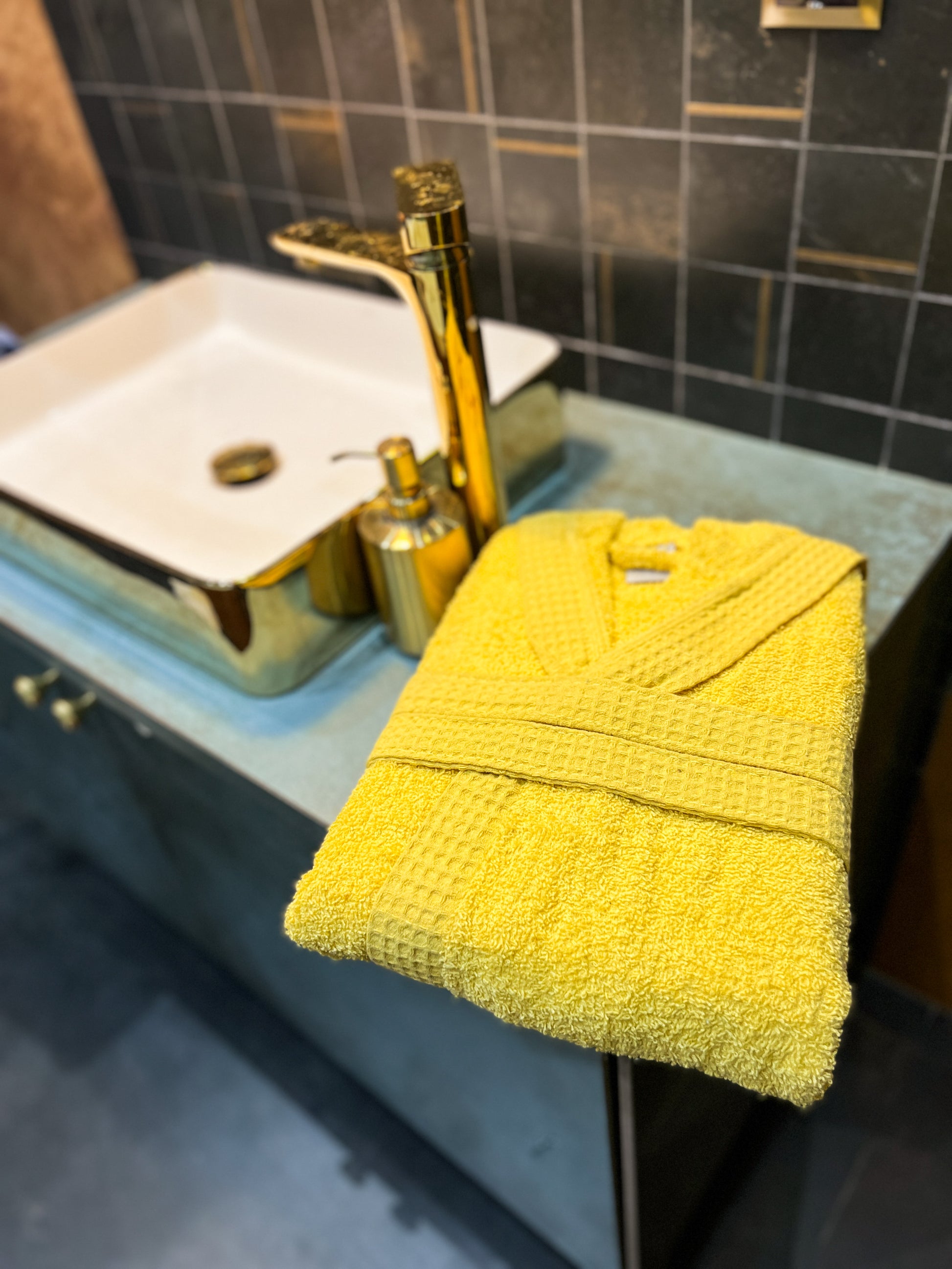 Ērts un praktisks frotē halāts ar unisex piegriezumu, piemērots gan sievietēm, gan vīriešiem. Izgatavots no mīksta un labi mitrumu uzsūcoša auduma, kas sniedz patīkamu sajūtu pēc vannas, dušas vai pirts.