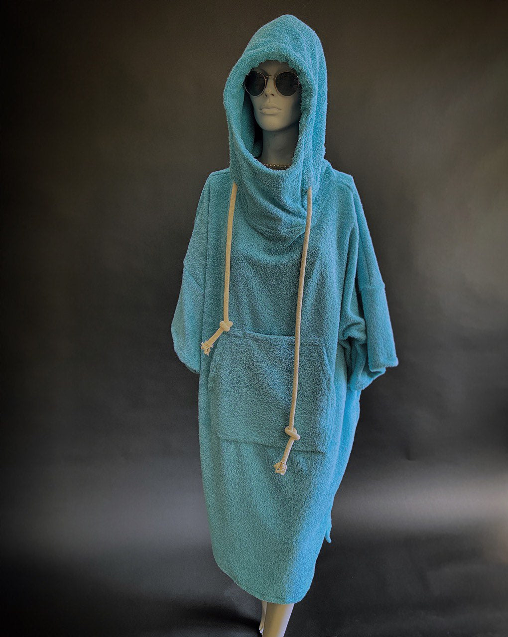 Kā sasildīties pēc peldes? Pančo! Ekselenta izvēle, lai žigli patvertos no vēja, ērti un slepeni! pārģērbtos, ieliktu pančo kabatā telefonu vai auto atslēgas. Drīzumā jaunas krāsas!